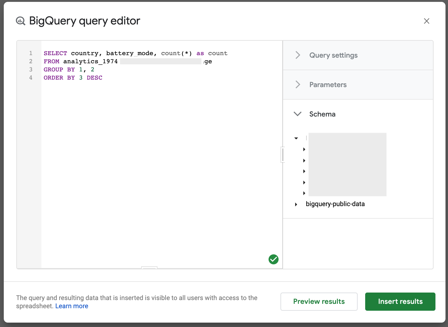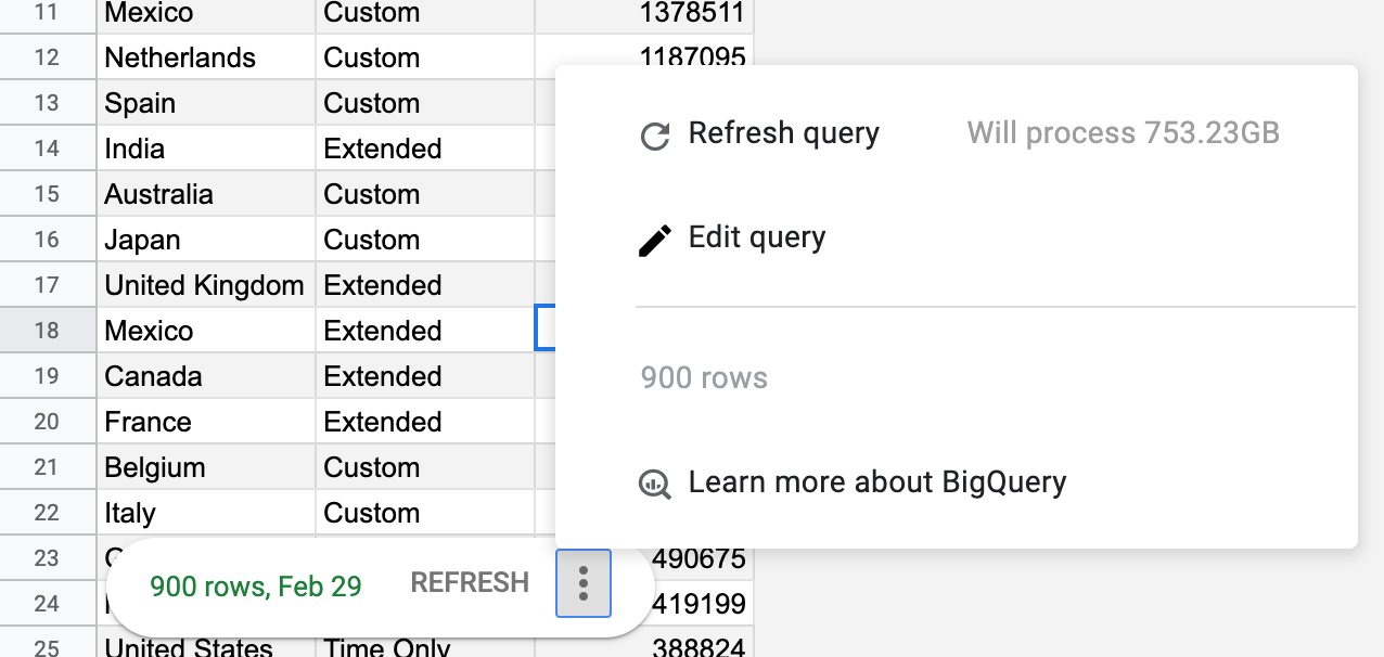 Schedule automatic updates: You'll be able to use tools like Apps Script and the macro recorder to schedule automatic updates to the connected BigQuery data.